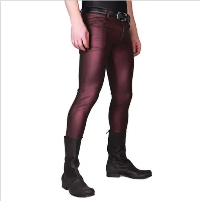 Пикантные мужские кожаные облегающие сапоги до середины икры, брюки персикового цвета с ягодицами, узкие сапоги, брюки из искусственной кожи, леггинсы в стиле панк, блестящие узкие брюки