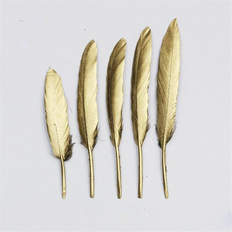 10 шт./пакет позолоченные ПЕРЬЯ 5-7 дюймов для украшения рождества и свадебной вечеринки и DIY принадлежности для рукоделия