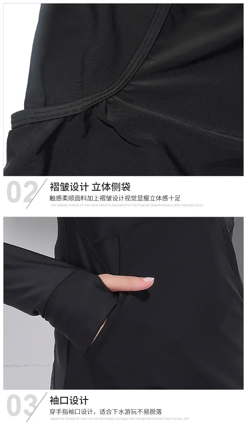 Sbart Rashguard Wetsuit Sexy Swimdress For Women, One Piece Swimsuit Black Swimsuit Long Sleeve Swimwear Surfing Bathing Suit