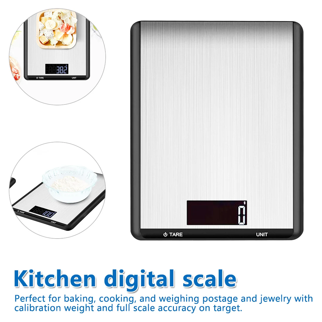 2. Качественная конструкция платформы из нержавеющей стали: Эти многофункциональные пищевые весы имеют гладкую, пищевую платформу из нержавеющей стали и технологию защиты от отпечатков пальцев, который имеет лучшие свойства для защиты поверхности от окисления/ржавчины, безопасного приготовления пищи, легкой очистки и обслуживания.