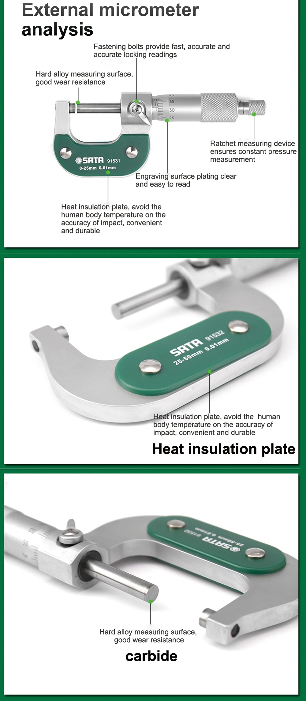 SATA 0-25/50/75 мм спиральный микрометр стены Толщина датчик Внешний Диаметр суппорт 91531