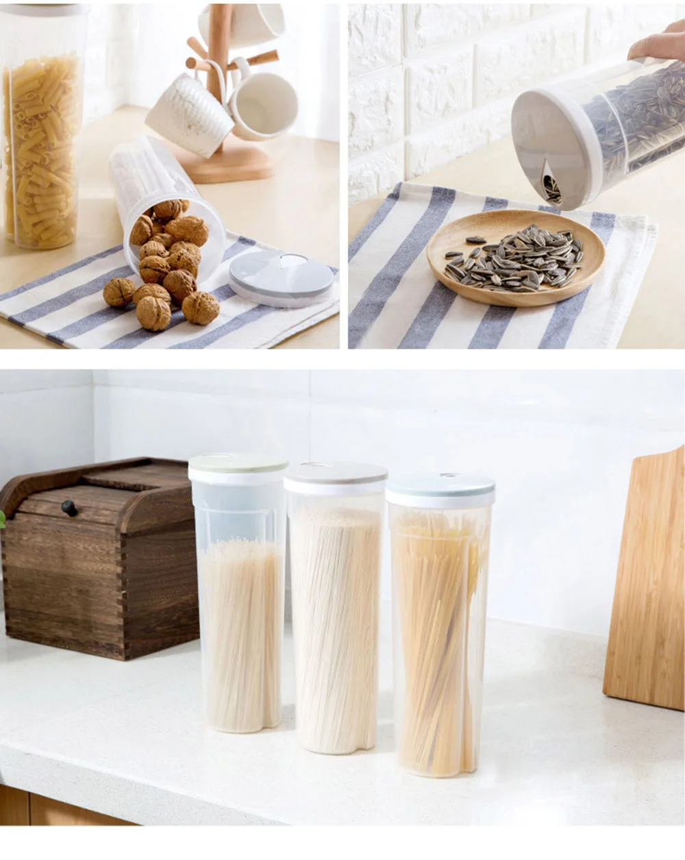Подходит не только для хранения лапши, спагетти, но и для таких закусок, как семена дыни, орехи и многое другое.