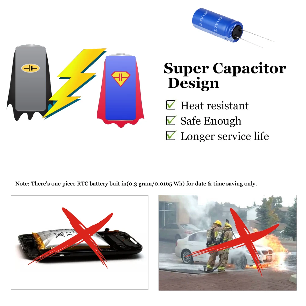 Он питается от суперконденсатора вместо литиевой батареи. В общем, супер конденсаторы более надежны и обеспечивают более длительный срок службы. По сравнению с батареями, супер конденсаторы не будут расширяться и набухать, чтобы разрушить устройство. Это особенно важно, если вы живете в особенно холодном и жарком месте. Преимущества перевешивают традиционные устройства с питанием от батареи. Это точно стоит повышения долговечности и надежности.