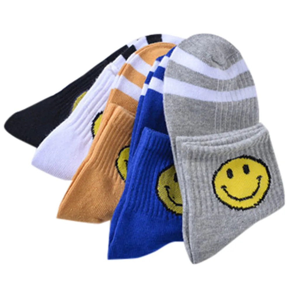 Носки унисекс теплая Крутые повседневные Модные хлопковые полосатые носки со смайликом