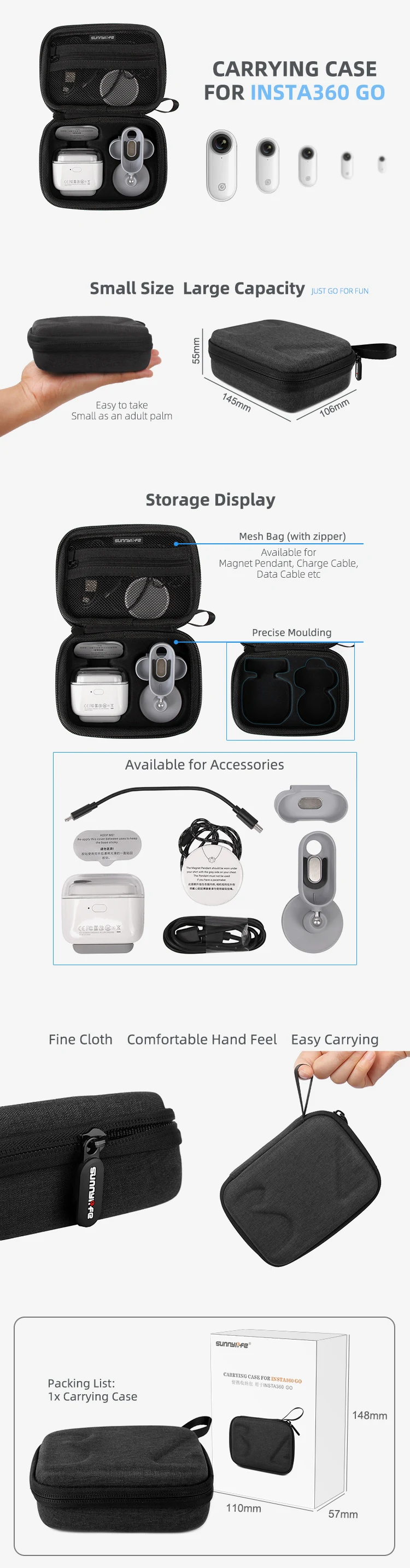 Сумка для хранения камеры Sunnylife портативный чехол для переноски для спортивной камеры Insta360 GO чехол для путешествий на открытом воздухе