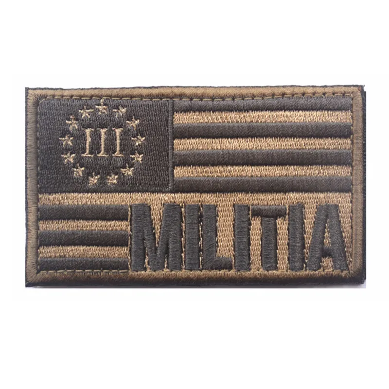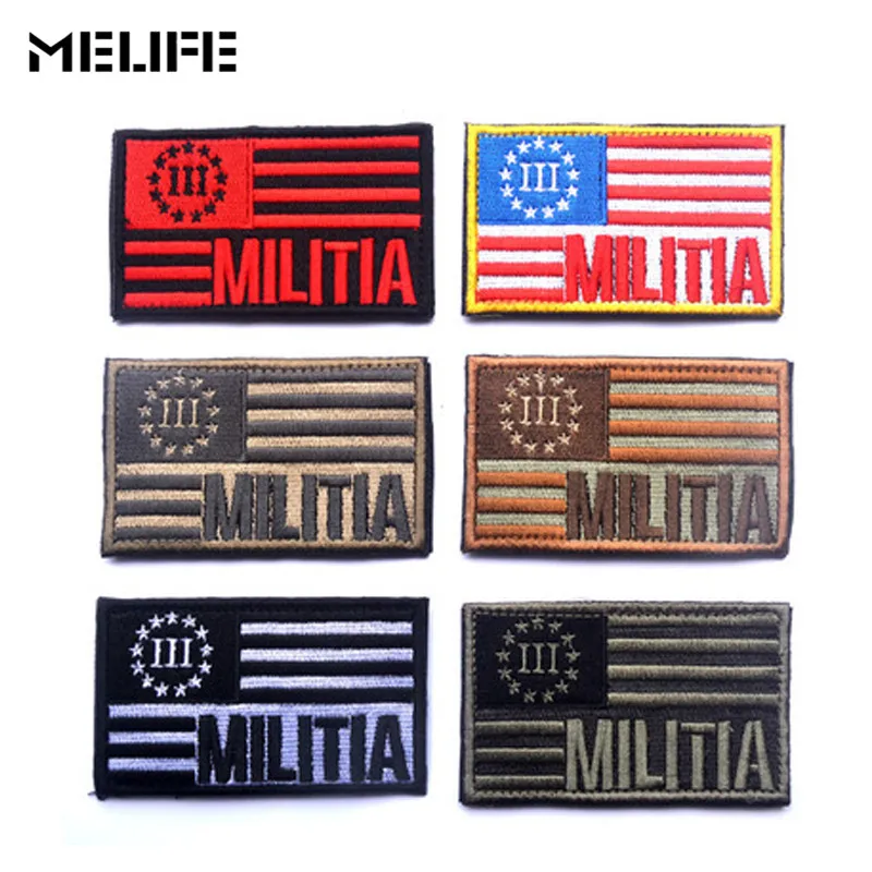 Вышитый американский флаг нашивка militia 3D тактические заплатки прямой опт и розница нам нагрудный знак крючок на застежке-липучке; Одежда Боевая нарукавная повязка Военная нашивка