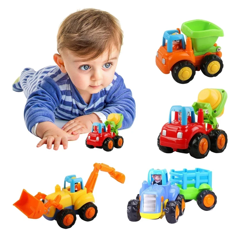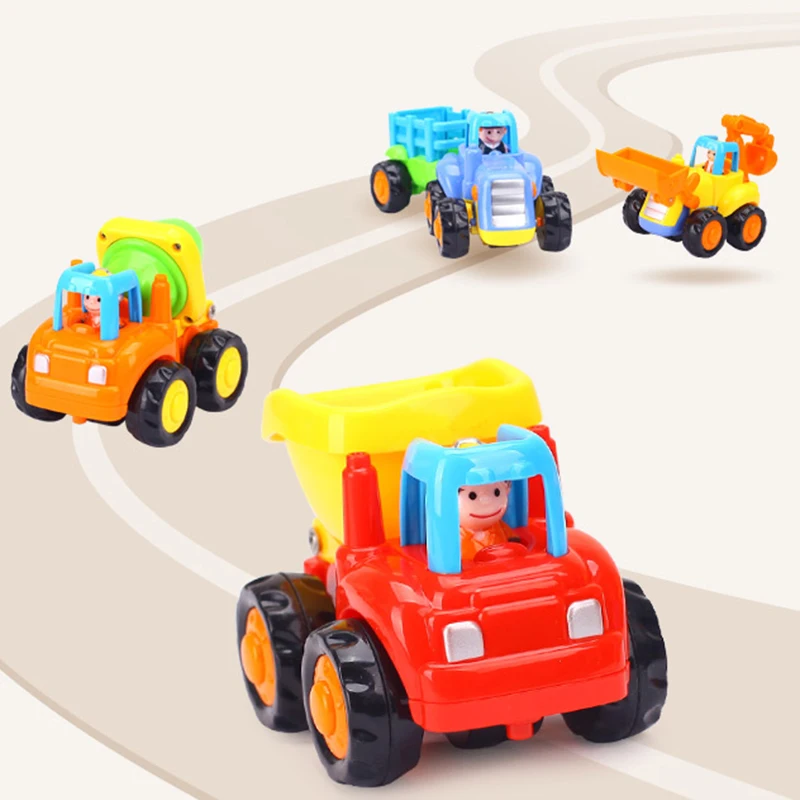 Мультипликационный фрикционный игрушечный автомобиль для малышей 4 упаковки, самосвал, бетономешалка, бульдозер, трактор, игрушечные грузовики, игрушки для малышей