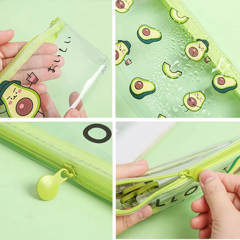 Кавайный чехол для карандаша, милый подарок авокадо, школьный пенал, прозрачная косметичка