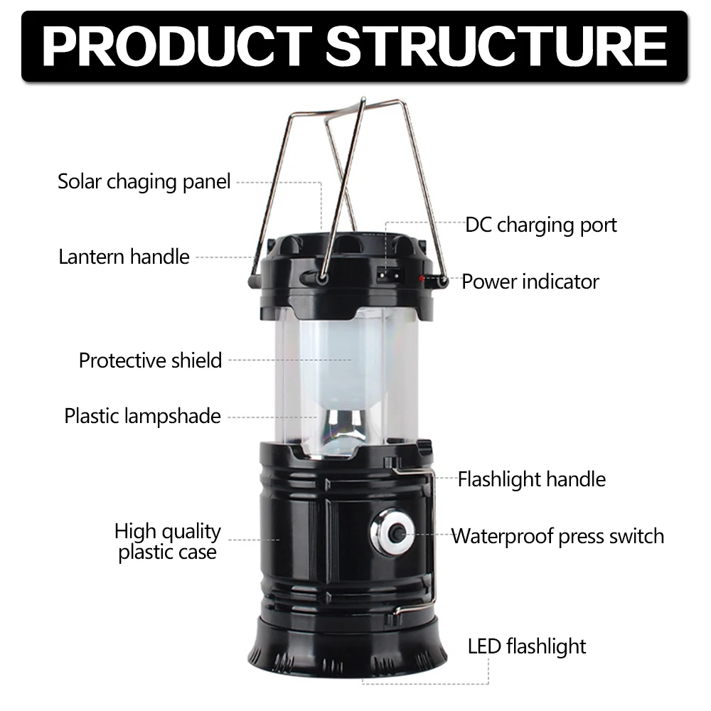 Перезаряжаемый фонарь, портативный складной фонарик на солнечной энергии для кемпинга, пешего туризма, аварийное освещение, наружная палатка, фонарь для кемпинга