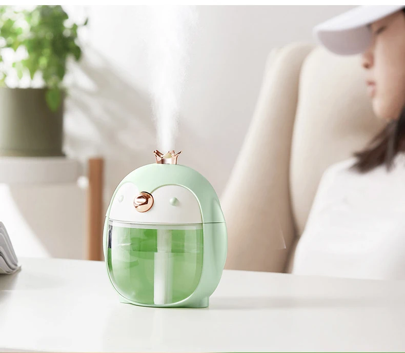 Название: увлажнитель воздуха с милым пингвином Модель: H02 Напряжение: DC5V, 1A Скорость Распыления: 25-35 мл/ч Ёмкость: 300 мл Размер: 122*103*88 мм Способ зарядки: USB Цвет: светильник-зеленый, розовый Материал: АБС + ПП