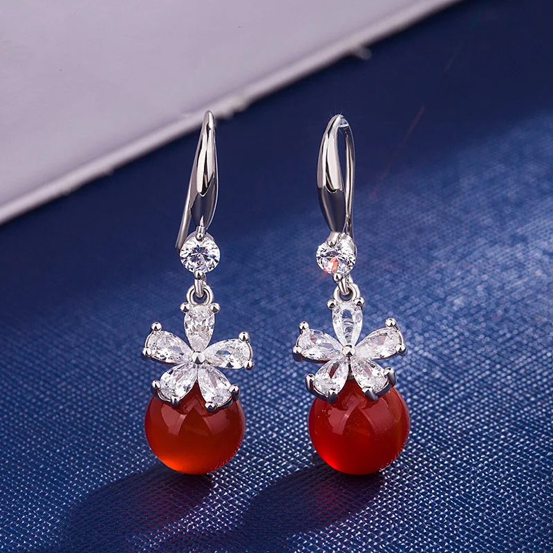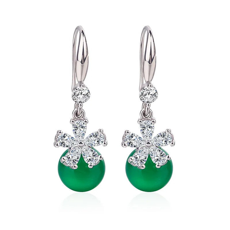 925 Серебряный натуральный зеленый агат Изумруд Серьги Ретро Национальный зеленый топаз Халцедон серьги с натуральным бриллиантом драгоценный камень