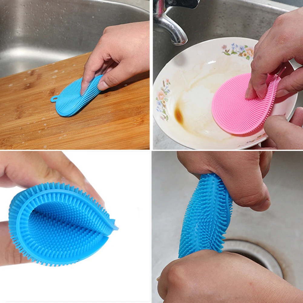 Силиконовая губка для посудыКоврикАнтибактериальная кухонная скрубберная овощная щетка для фруктов