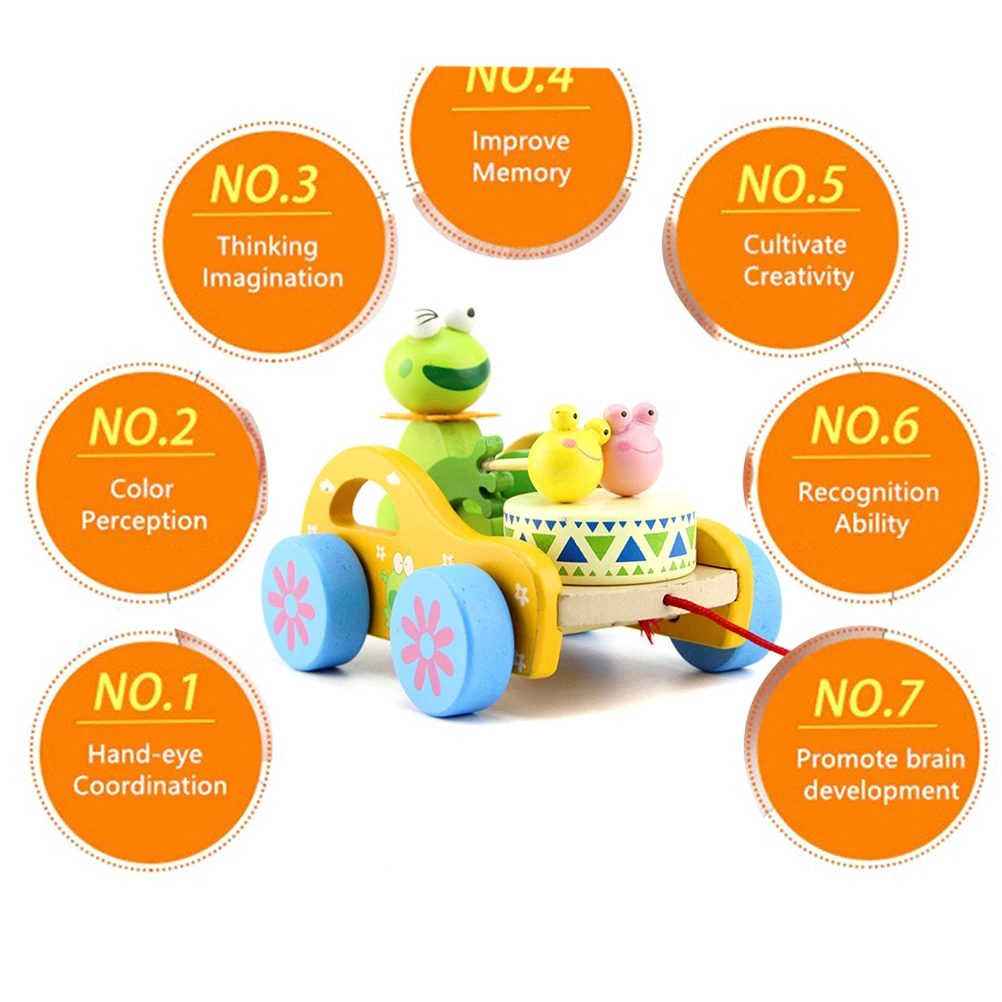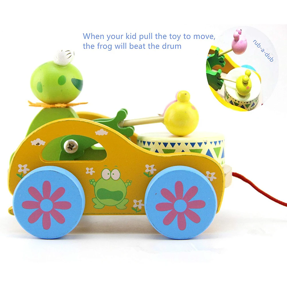 Деревянный кролик/лягушка удар барабан тянуть игрушка Монтессори ранняя развивающая игрушка для детей подарок на день рождения