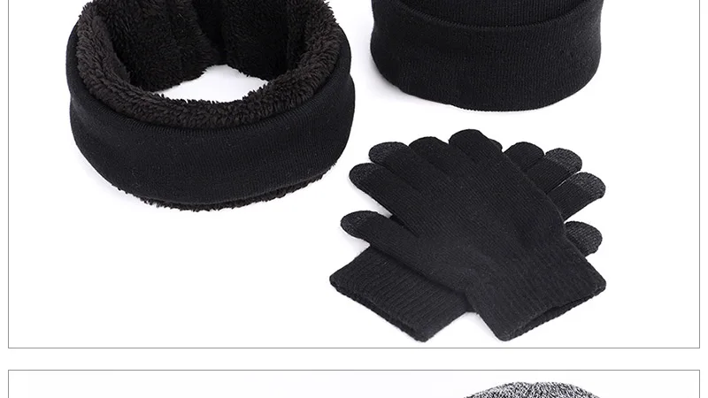 Зимний мужской/женский теплый комплект шапка шарф перчатки 3 комплекта уличные головные уборы в горошек Лыжная теплая маска перчатки с сенсорным экраном нагрудник шапка