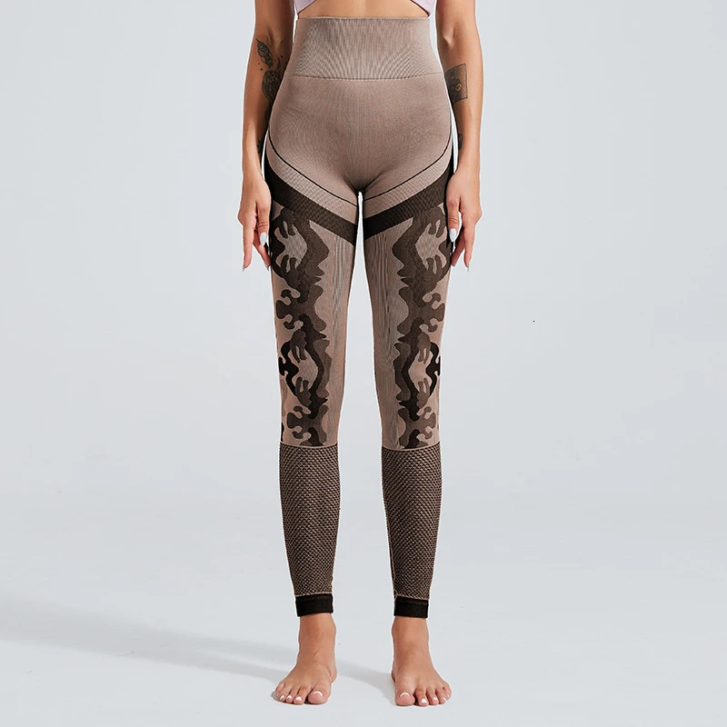Новые Бесшовные штаны для йоги, женские спортивные Леггинсы для подтяжки бедер, сексуальные камуфляжные леггинсы с вырезами для фитнеса, тренажерного зала, спортивные штаны для бега и тренировок