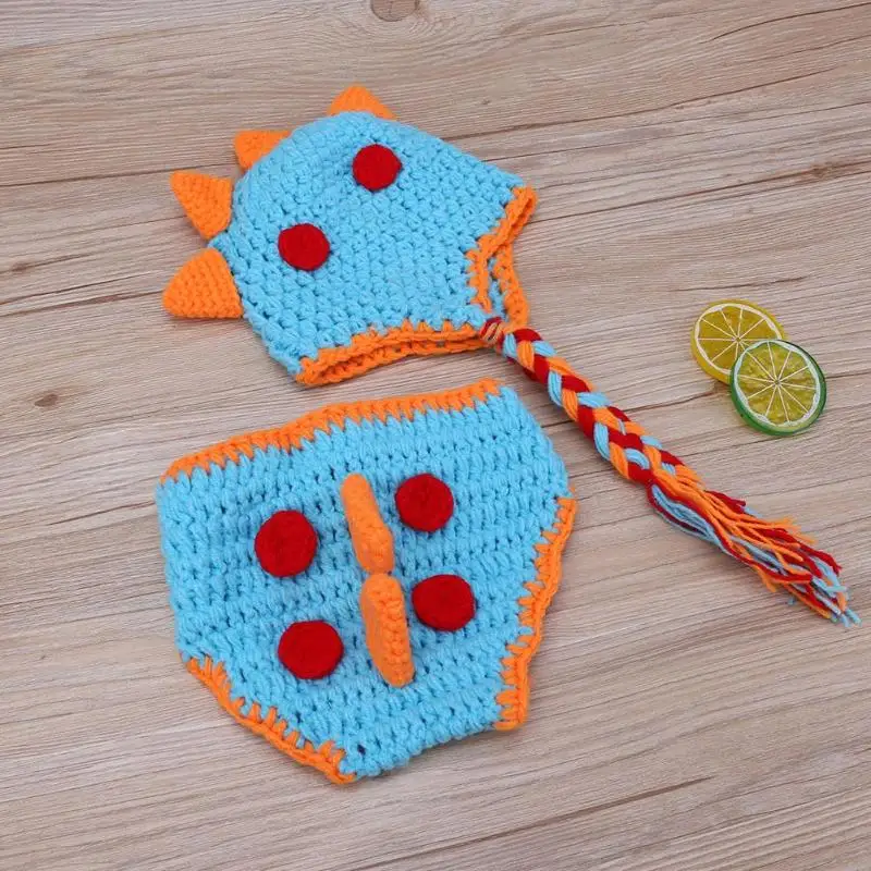 Милый вязаный крючком комплект одежды для фотосъемки новорожденных детей в форме динозавра реквизит для фотосъемки