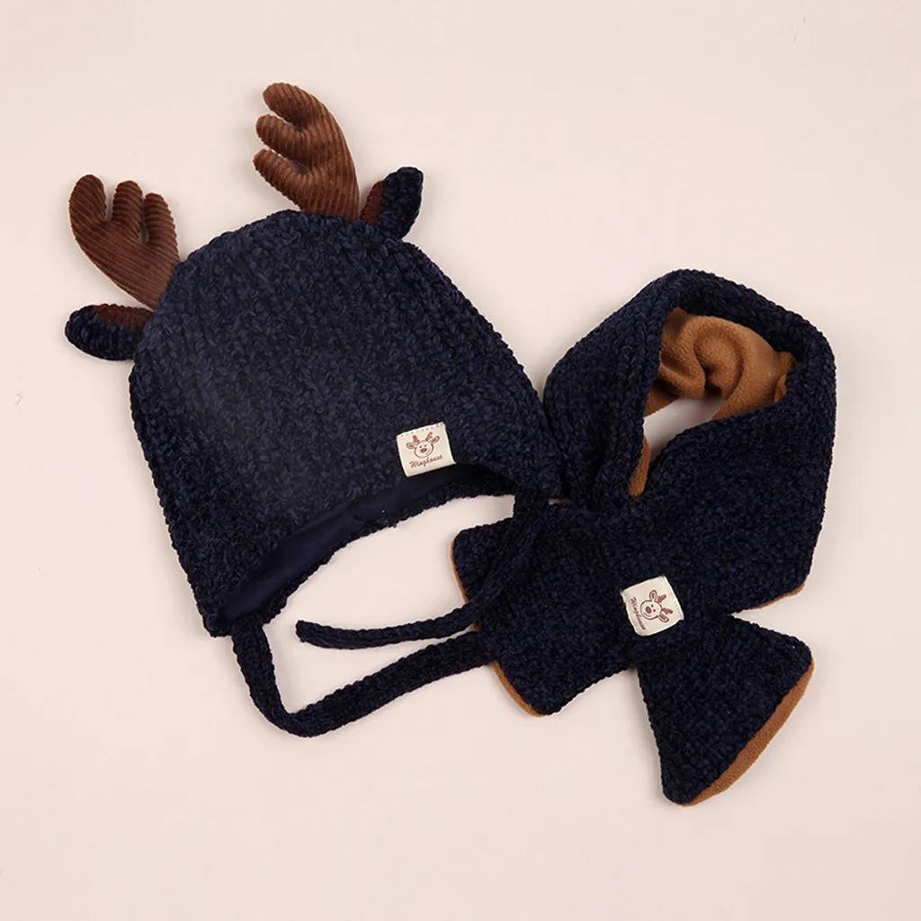 Зимняя вязаная шапка с принтом для маленьких девочек и мальчиков, набор из шапки и шарфаПол: унисекс
