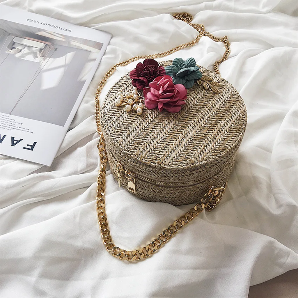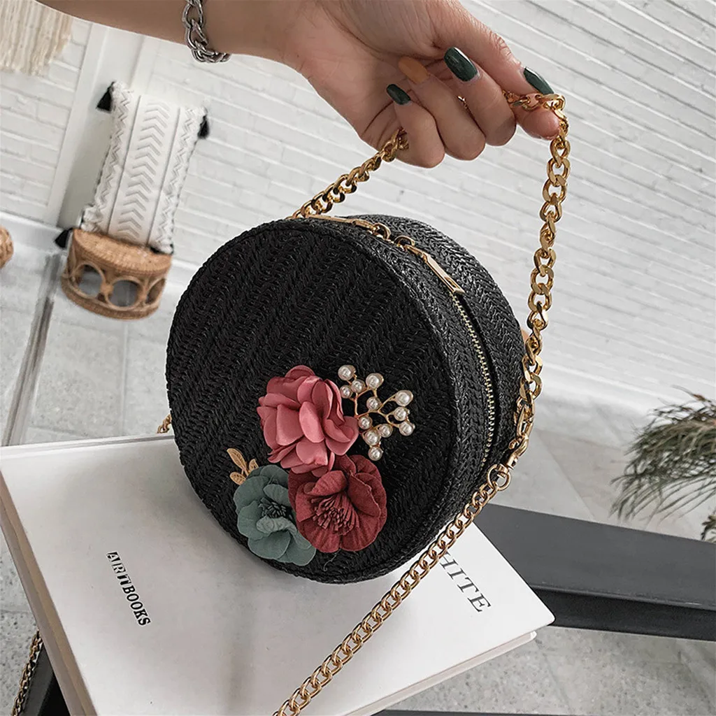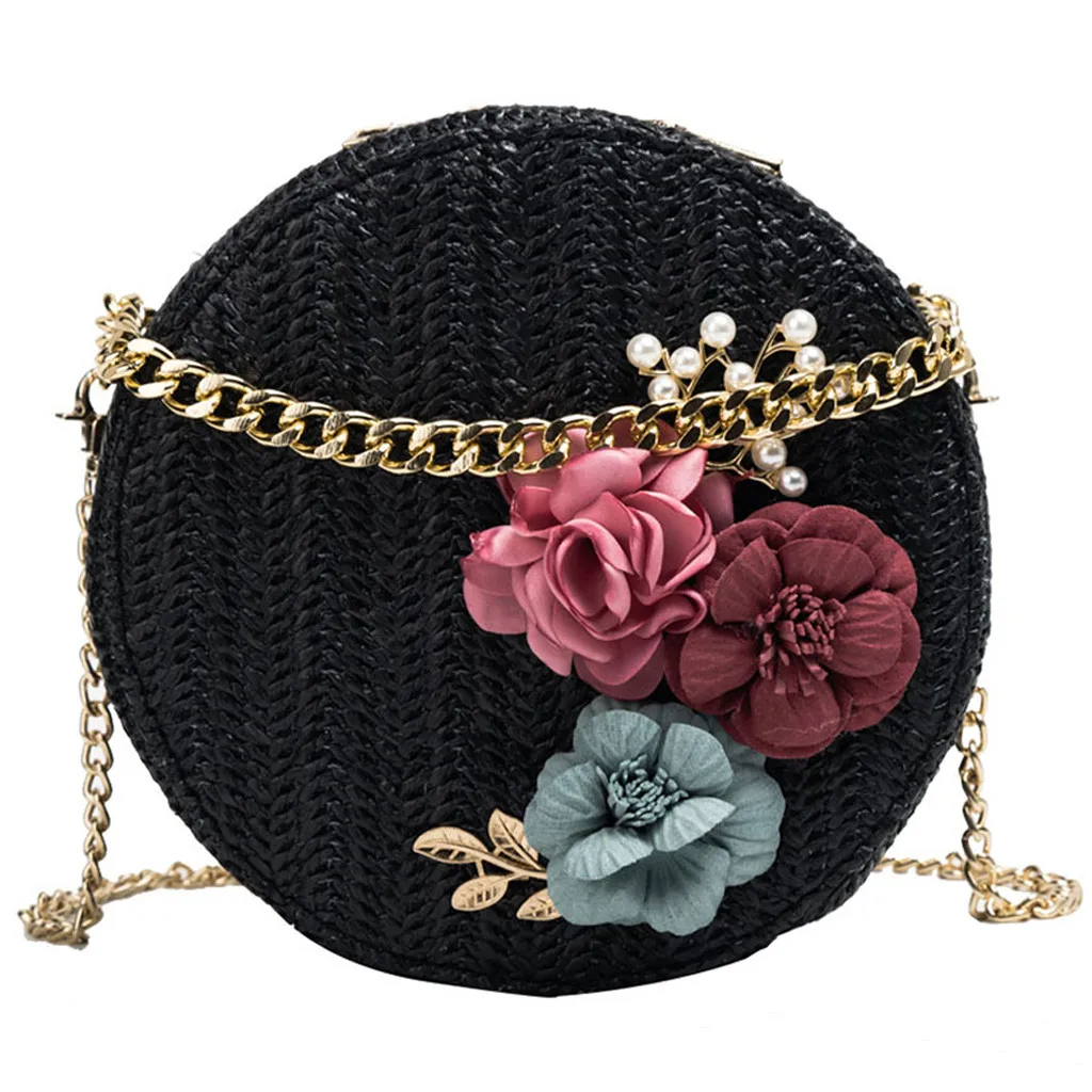 Модная женская Ретро тканая сумка с цветами, круговая цепочка, сумка через плечо, сумки на плечо