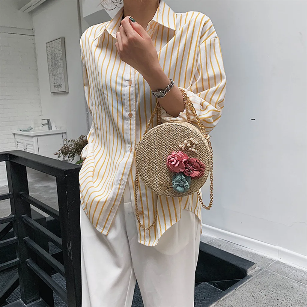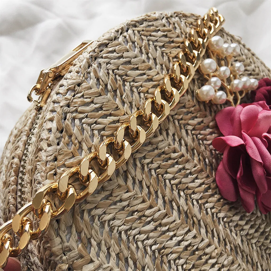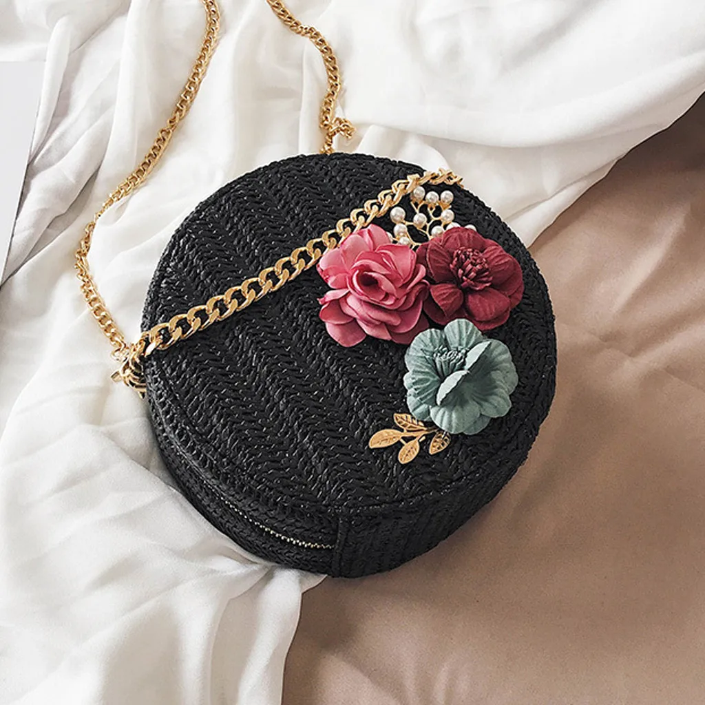 Модная женская Ретро тканая сумка с цветами, круговая цепочка, сумка через плечо, сумки на плечо