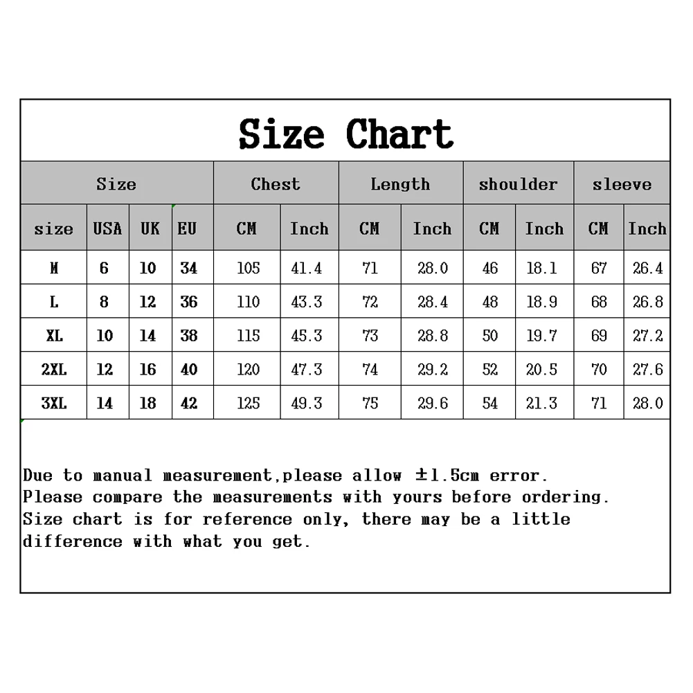 [Наш Размер 3XL] Обхват груди: 125 см/49,21 ", Длина: 75 см/29,53", плечо: 54 см/21,26 ", рукав: 71 см/27,95" (прибл.)