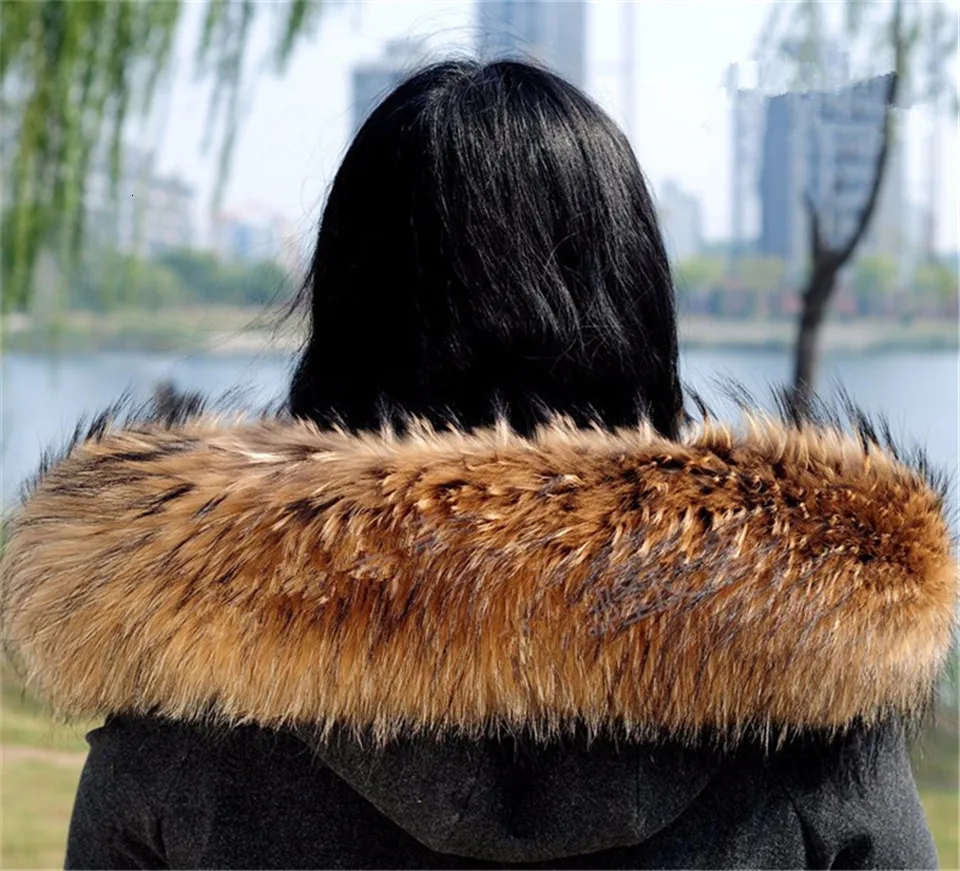 2016 натуральный мех енота шарф женский 100% натуральный мех енота воротник зимняя теплая шаль меховой воротник-шарф L #9