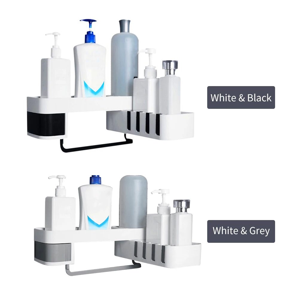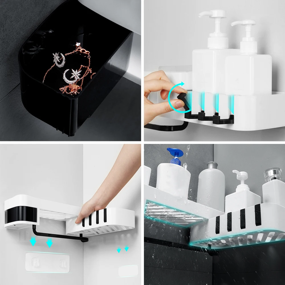 [Сливные отверстия]Конструкция с отверстиями снизу позволяет быстро сливать воду, угловая полка будет держать ваши предметы вдали от грязной воды.