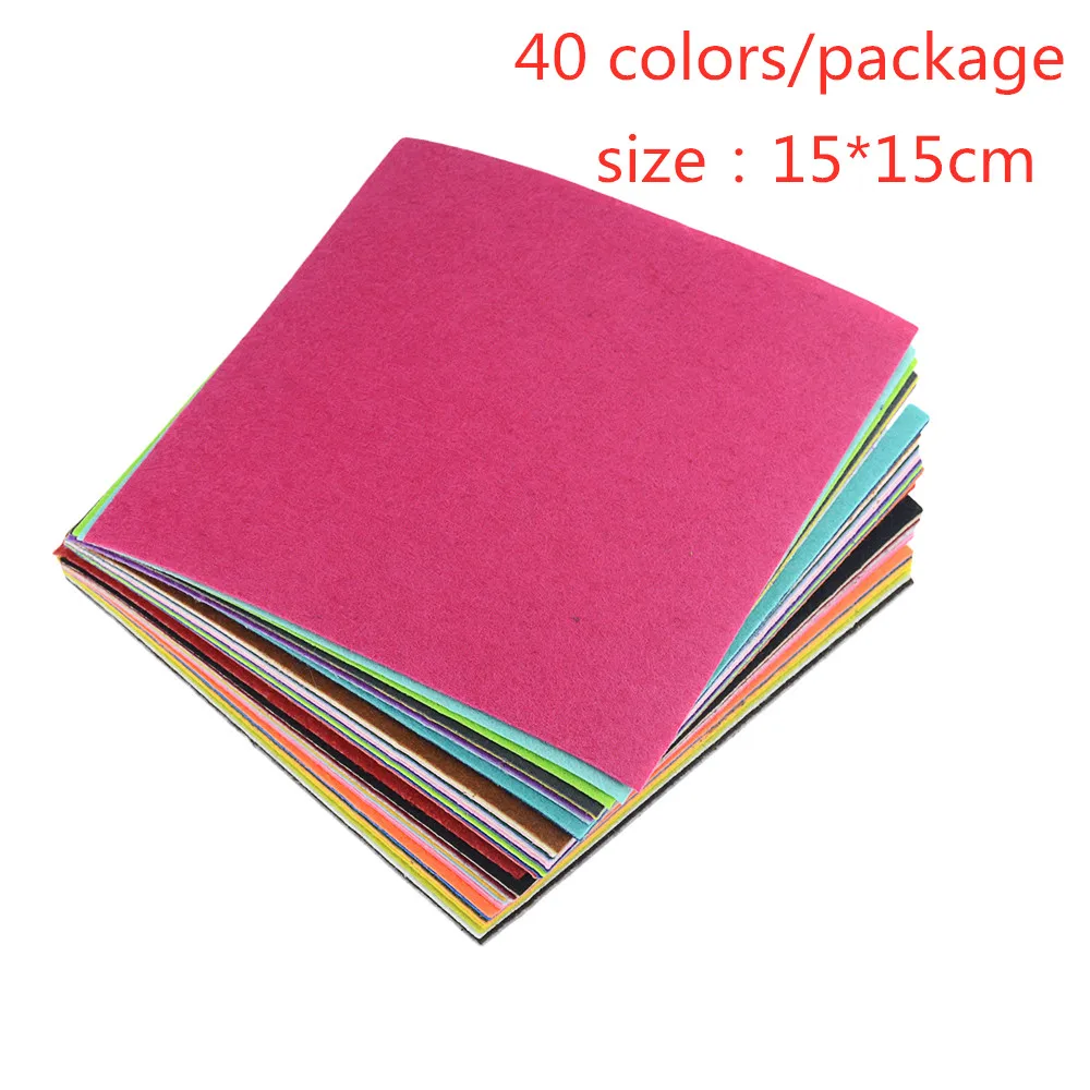 Материал: войлок Размер: (длина * ширина) 15 см * 15 см Толщина: около 1 мм Вес: 140 г Цвет: 40 цветов s, по одному для каждого цвета, всего 40 листов, форма: квадратная