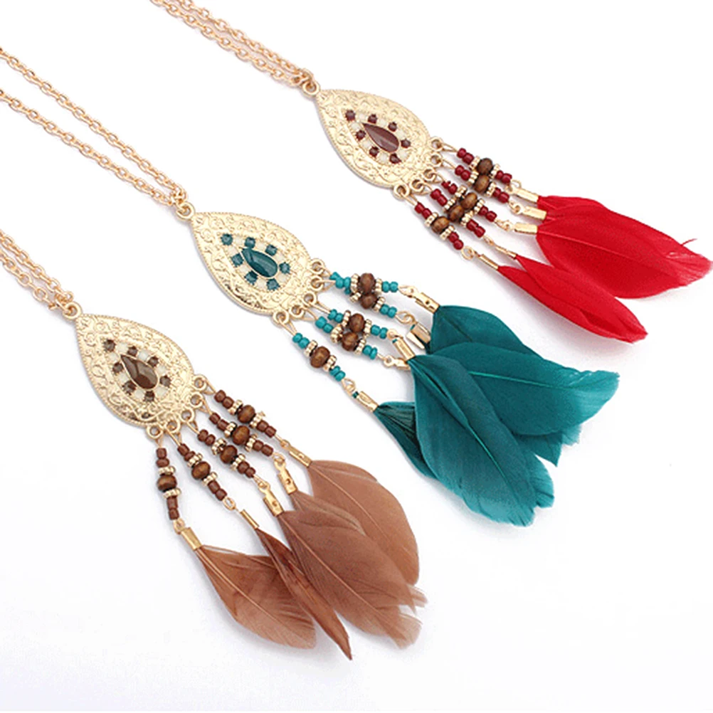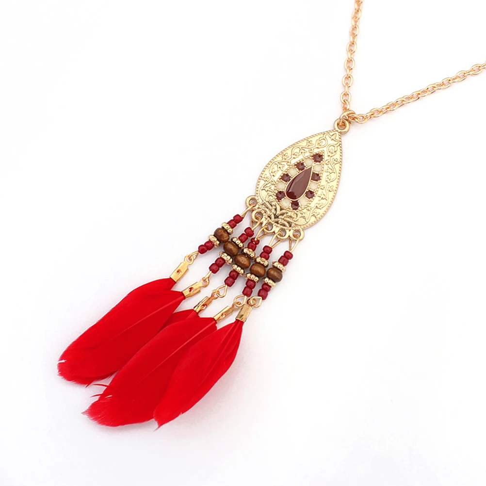 1 * винтажное ожерелье с перьями и кисточками стильное овальное ожерелье с цепочкой украшения ювелирных изделий (красное перо)