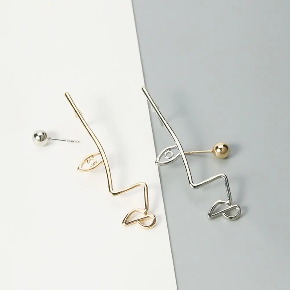 Длина длинных серег: 6 см Длинные серьги Ширина: 1,2 см Серьги-гвоздики в форме Длина: 1,7 см Цвет: золотой, серебряный Материал: сплав Посылка включает в себя: 1 пара