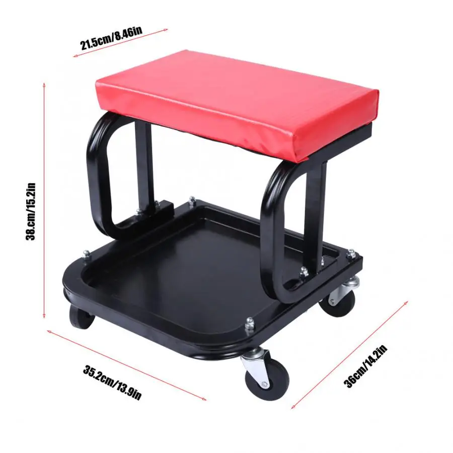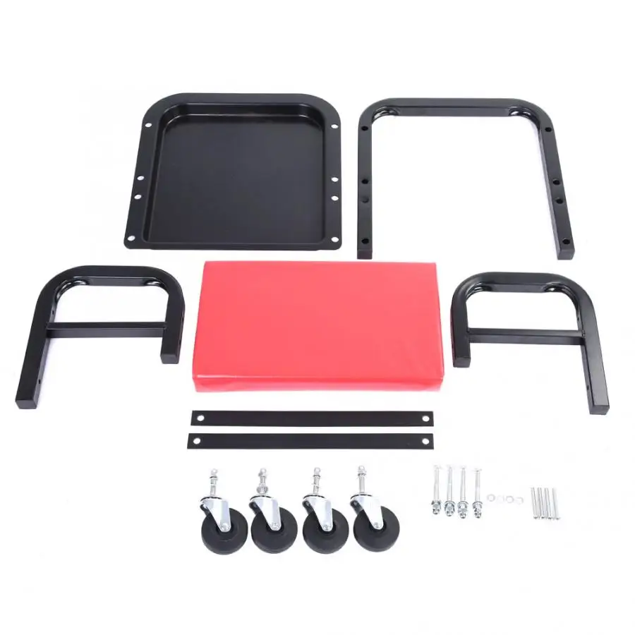 Совершенно новое и высококачественное ползающее сиденье с новым современным стилем и сильной практичностью. Красная подушка для защиты от грязи, прочная металлическая стальная рама. Четыре колеса легко перемещаются, это экономит ваше время и силы при ремонте вашего мотоцикла. Красный кожаный чехол с губчатой подушкой высокой плотности удобный и менее уставший, когда вы работаете с вашим мотоциклом. Легкий доступ к лотку для хранения, что удобно для вас, чтобы цель инструмента, который вам нужен. Это необходимый инструмент для вас, когда вы фиксируете свой мотоцикл.