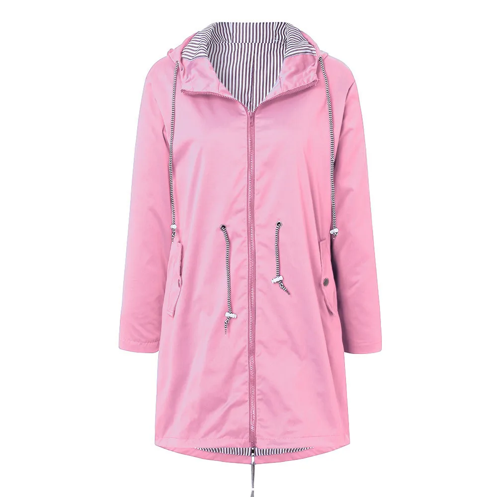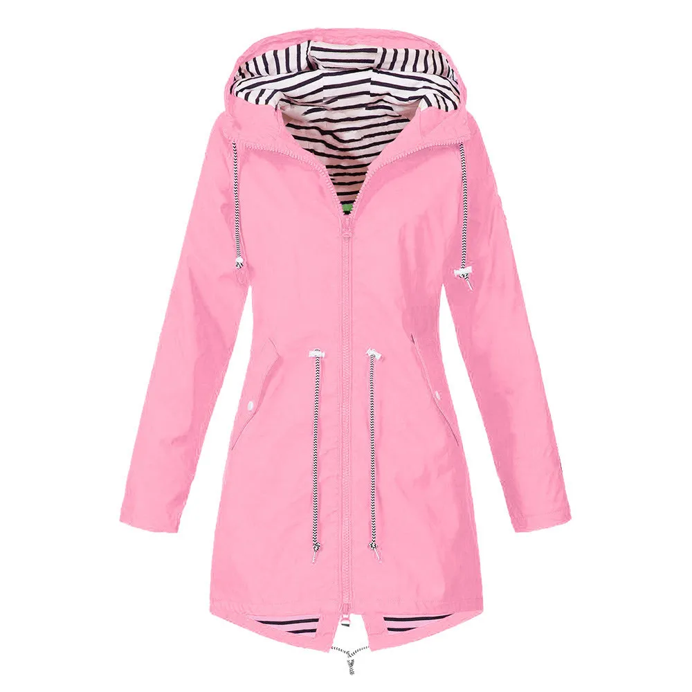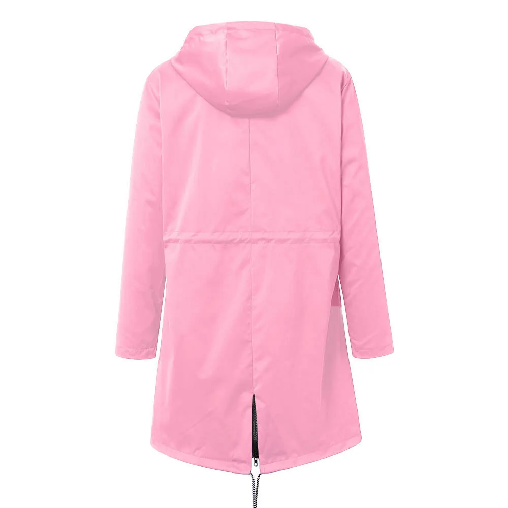 Женский однотонный дождевик, уличные куртки, водонепроницаемый дождевик с капюшоном, ветрозащитный