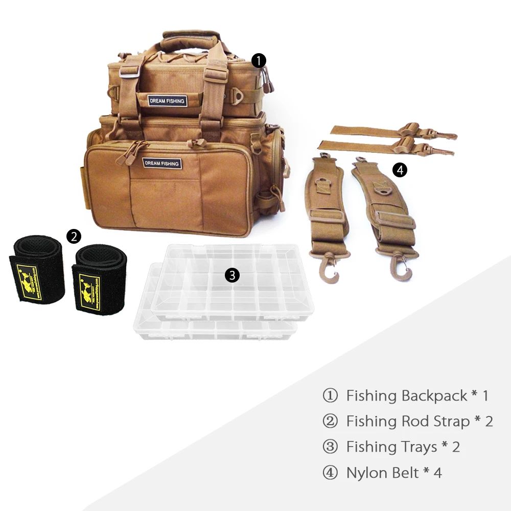Рыболовный рюкзак состоит из двух разных съемных сумок, рюкзака, сумки через плечо, поэтому он имеет хорошее место для рыбалки и достаточно места для удовлетворения ваших различных потребностей.