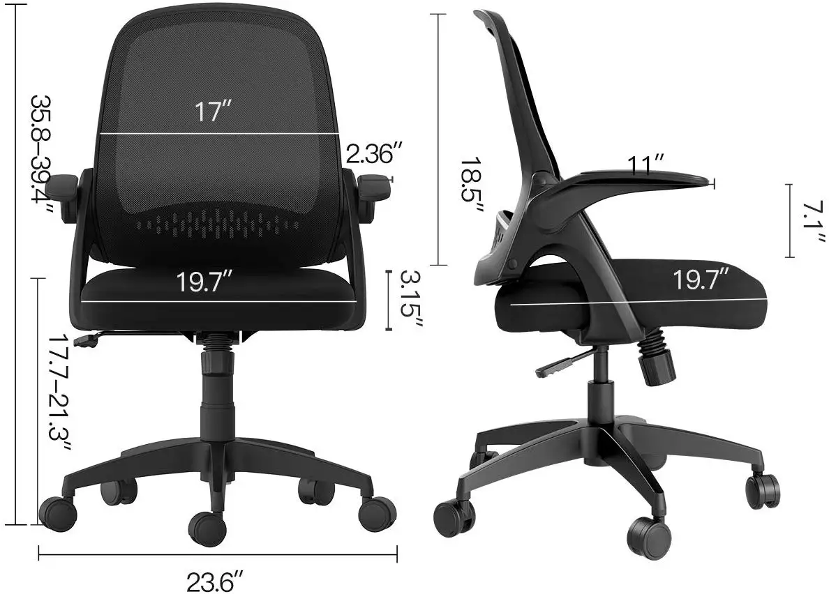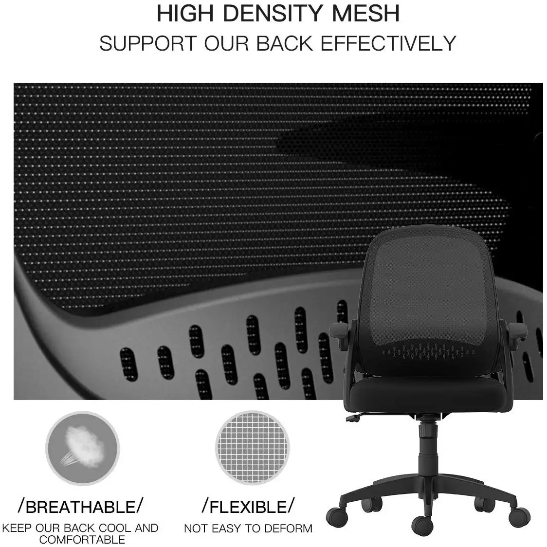 Домашнее офисное кресло к письменному столу-гладкий дизайн и простая регулировка кресла средней спинки. Сочетаются с различными декоративными стилями. Эргономичная спинка подходит к естественному изгибу нижней части спины и принимает боль позвоночника от вашего тела Экономия пространства-вы можете перевернуть руки и поставить стул под стол для экономии места. Подходит для гостиной, кабинета, конференц-зала и офиса Дышащая сетчатая спинка высокой плотности, гибкая поддерживающая, дышащая. Предназначен для поддержки нижней части спины Регулируемый-Hbada стул для домашнего офиса имеет напряжение наклона 120 °, пневматическая высота регулируется от 17,7 дюйма до 21,2 дюймов, соответствует разному статусу. Вес: 250 фунтов.