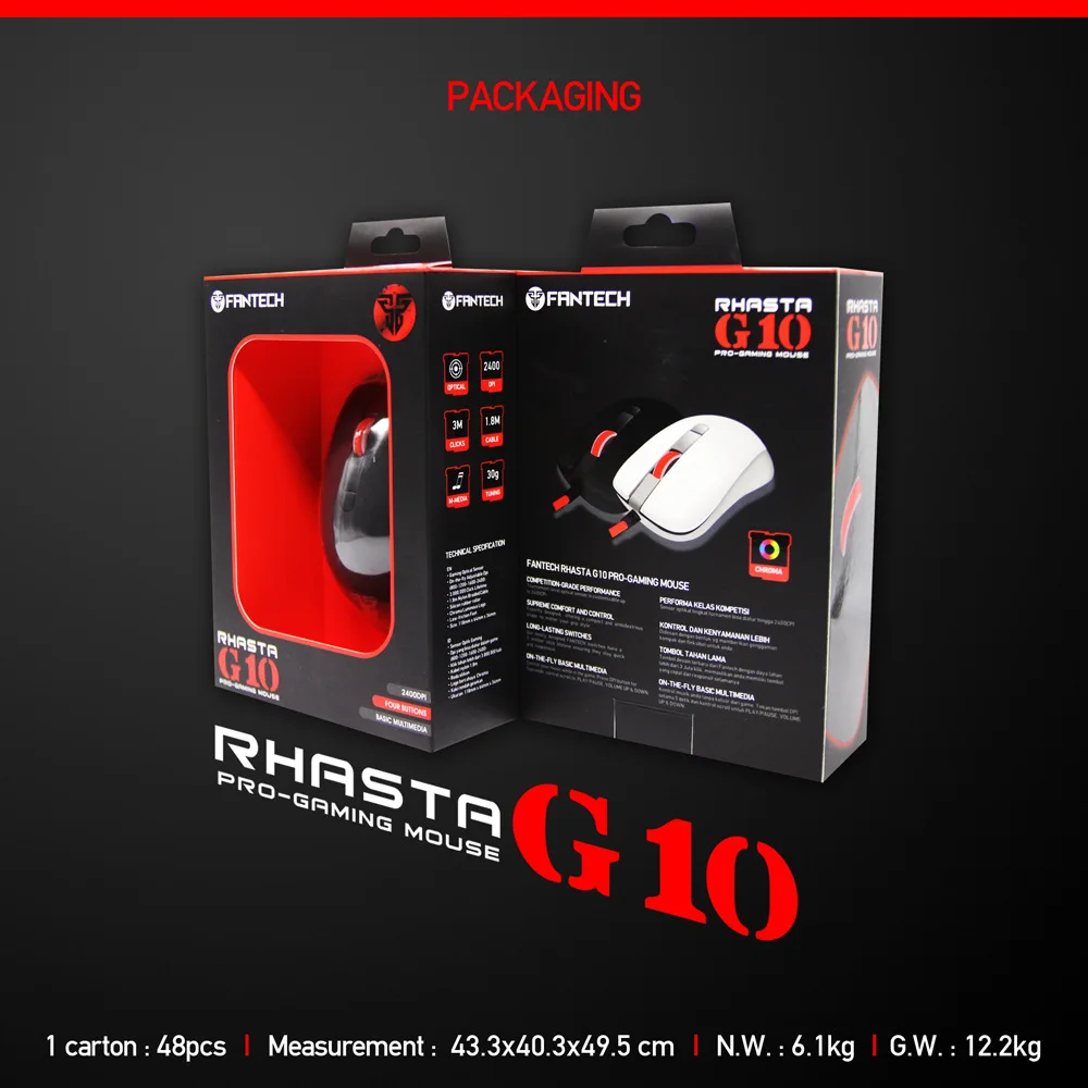 1.100% Новинка и высокое качество! 2.4D основная функция pro-gaming mouse; 3,3 м долговечные переключатели; 4,2400 dpi на переключателе fly dpi; Легкий поворот 5,30 г; 6. Хромовый светящийся светильник улучшает ваш игровой опыт, поворачивая светильник G10 chroma; 7. С кабелем длиной 180 см легко перемещаться на вашем рабочем столе.
