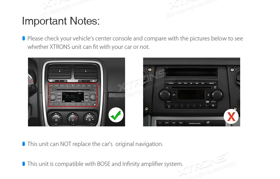 1. Please check your vehicle's center console to see whether XTRONS unit can fit with your car or not.
