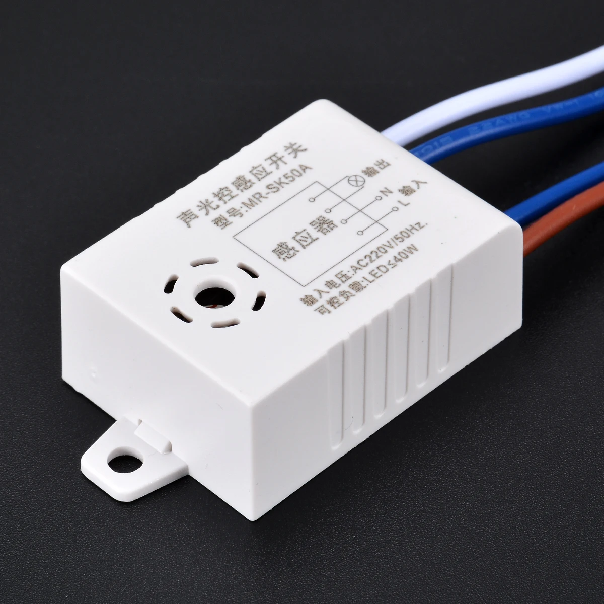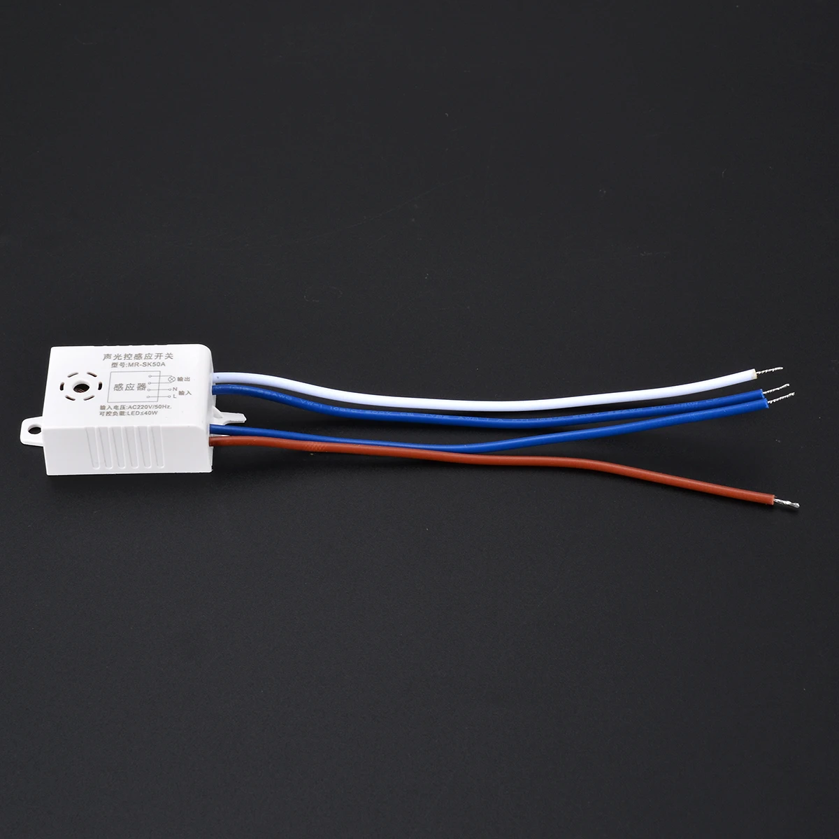 Может управляться любым звуком, и он будет работать в темной среде, например в ночное время.