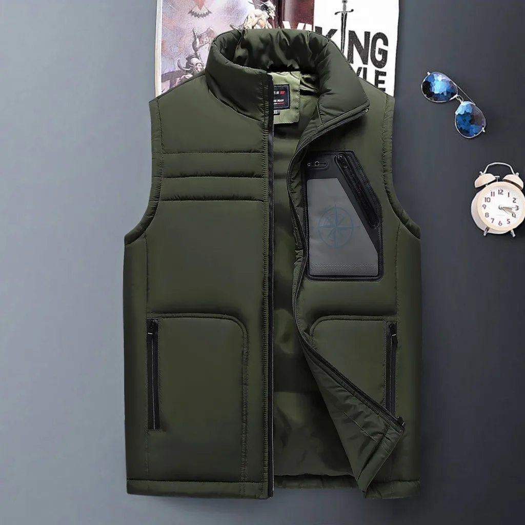 Новинка, модная мужская осенне-зимняя однотонная верхняя одежда, жилет, утепленная куртка, топы, блузка