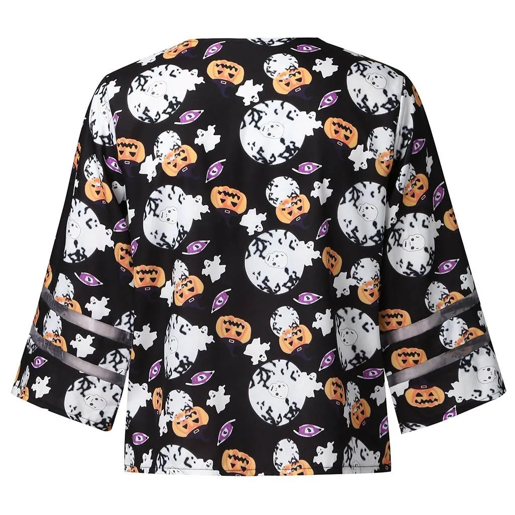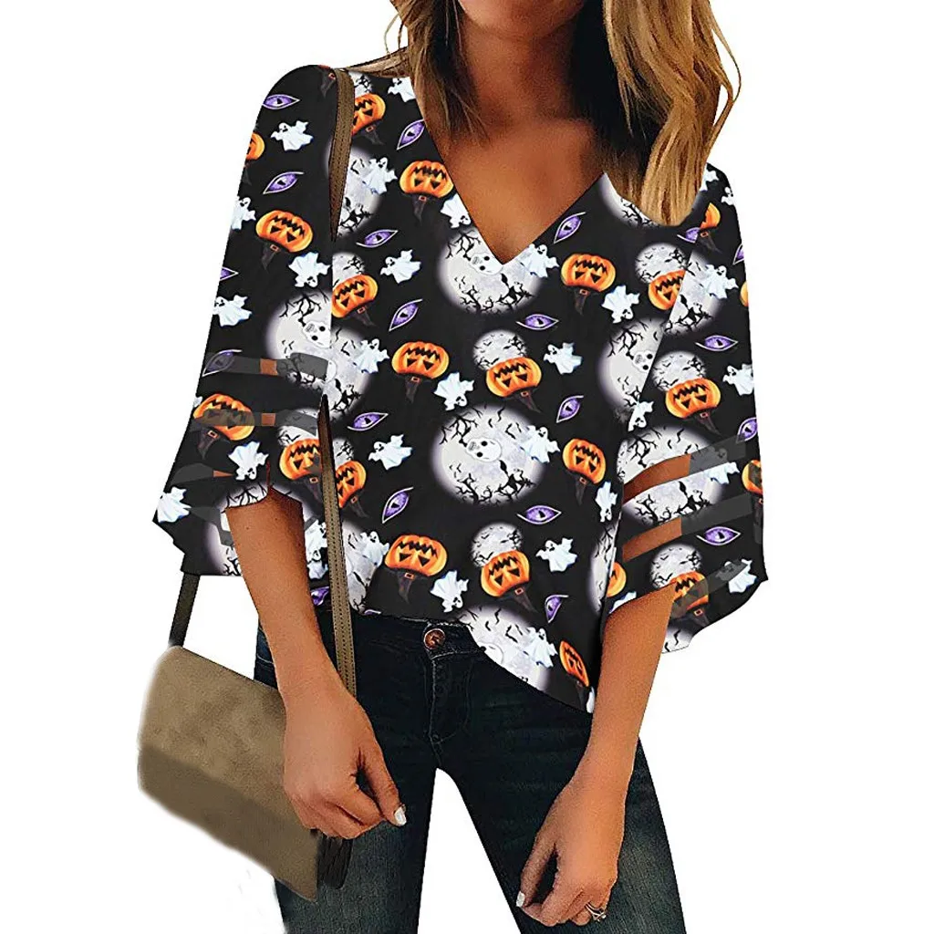 Женская цветная блузка с v-образным вырезом и принтом на Хэллоуин 3/4