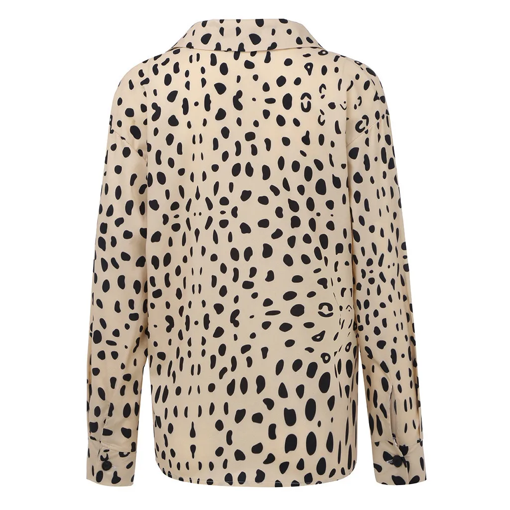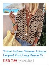 Модная женская Свободная футболка с леопардовым принтом и длинными рукавами с v-образным вырезом