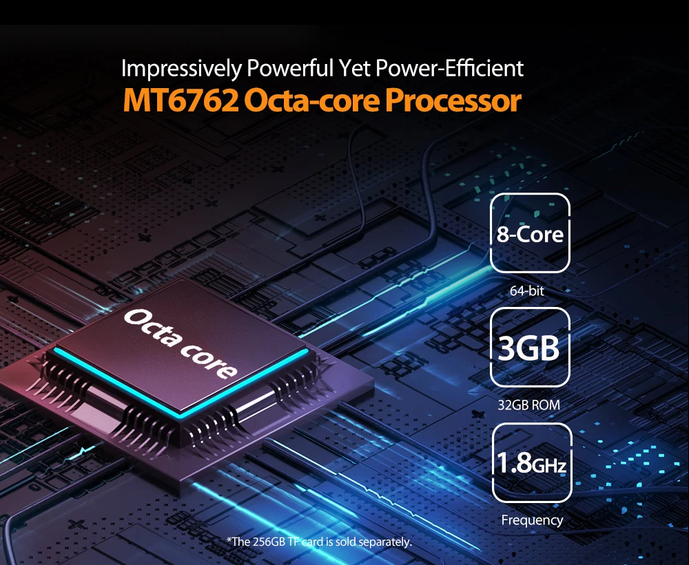WIFI: 802,11 a/ac/b/g/n (2,4G + 5G) Bluetooth:Bluetooth® 5,0 RAM + ROM: 3 ГБ + 32 ГБ Камеры: 13MP (сзади) + 5MP (спереди) Аккумулятор: 5000 мАч Функции: G-сенсор, p-сенсор, l-сенсор,NFCЭлектронный компас.Языки: Африканны, малайский, каталанский, чешский, датский, Галицкий, хорватский, индонезийский, итальянский, латышский, португальский, румынский, словацкий, финский, шведский, украинский, индонезийский, иврит, урду, арабский, персидский, упрощенный китайский, традиционный китайский немецкий, эстонский, английский, испанский, филиппинский, французский, украинский, венгерский, голландский, норвежский, Польский, вьетнамский, турецкий, греческий, болгарский, русский, сербский, хинди, бенгальский, тайский, Бирманский, корейский, японский.