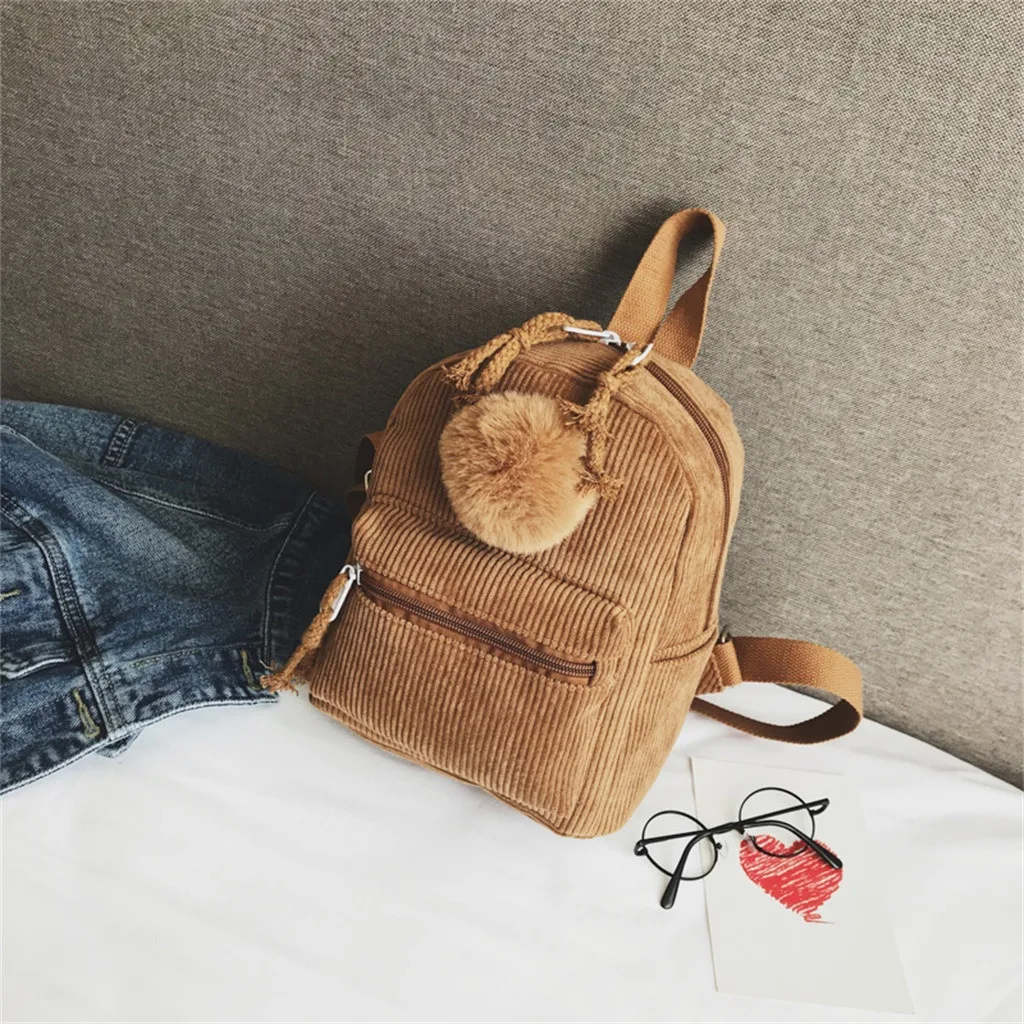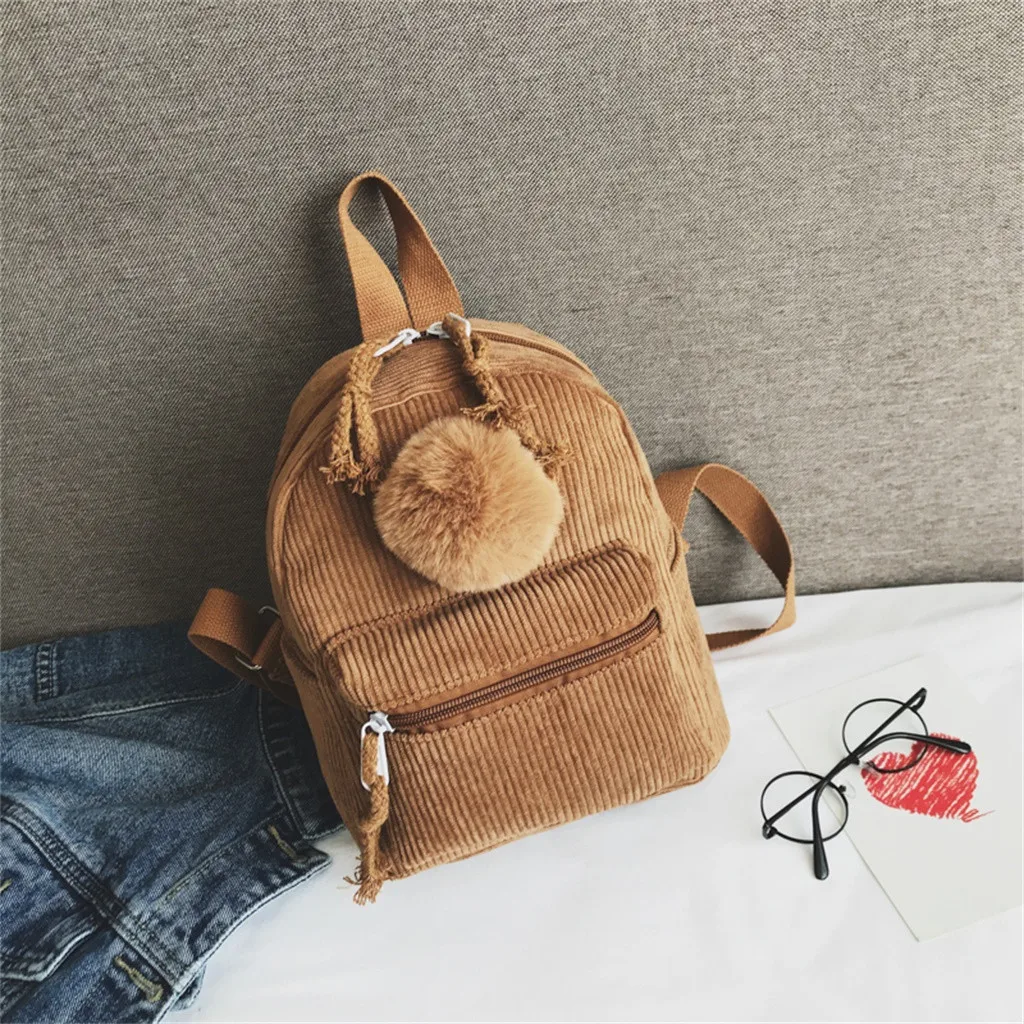 Большой Вместительный однотонный вельветовый Повседневный Рюкзак Школьная Сумка