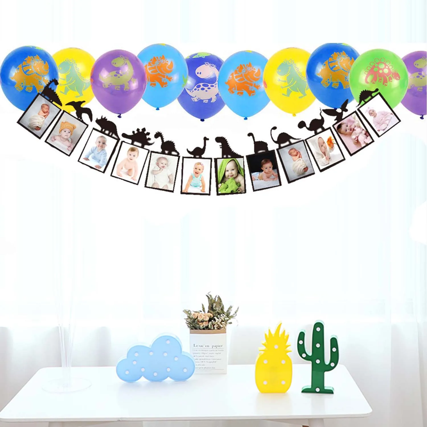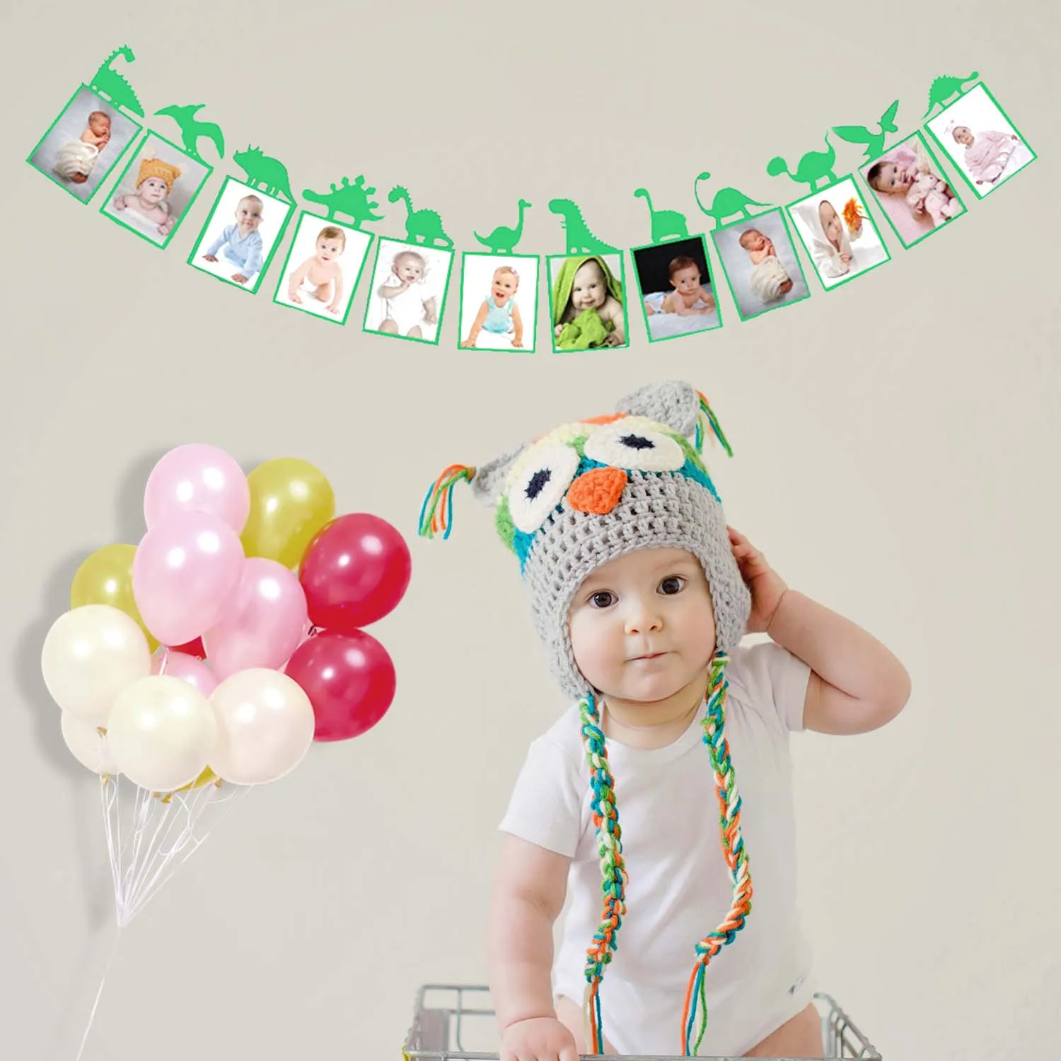 Ребенок фото плакат динозавр тема ребенка первый год День рождения баннер 1-12 месяцев фото стенд гирлянда ежемесячная веха фото плакат