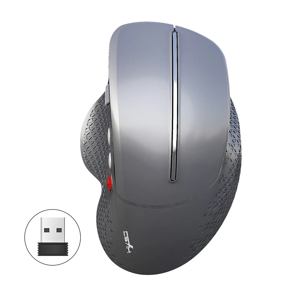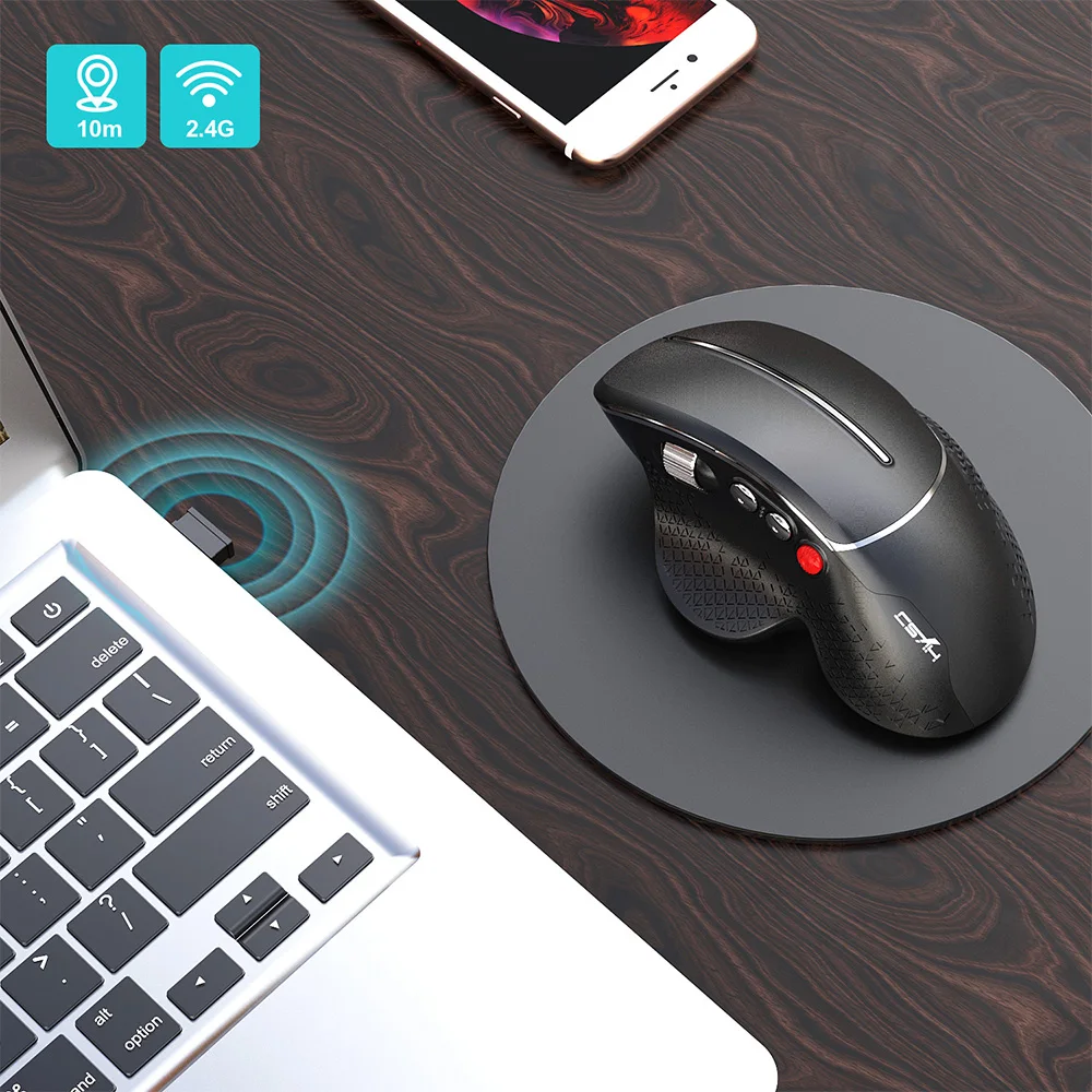 This is a new generation of vertical mouse.Comfortable finger groove,let each finger have the right pinch possition,make it comfortable to fit the key surface.The ergonomic design helps you get rid of tireness after long use of the wireless mouse,avoid carpal tunnel syndrome.2.4GHz wireless transmission technology,10m wireless transmission distance.Suitable for office, games, etc.