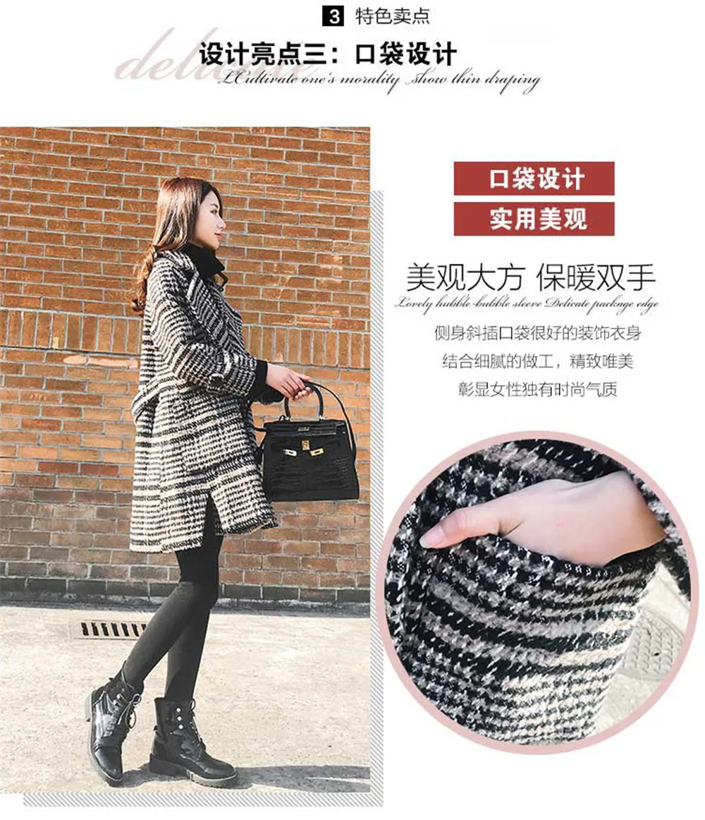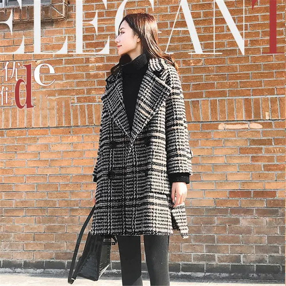 Женское шерстяное пальто в клеточку, теплое офисное пальто из флиса, винтажное длинное пальто для женщин, зима 2019