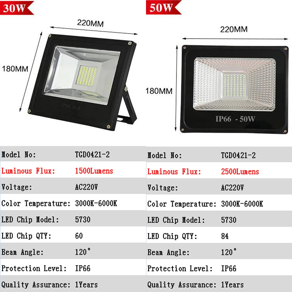 Мощность (Вт): 30 Вт, 50 Вт, 100 Вт, 150 Вт, 200 Вт, 300 Вт, 400 Вт, 500 Вт, Вт Входное напряжение (В): AC220V-240V Дополнительный цвет света: холодный белый 6000 K Материал крышки: закаленное стекло Материал корпуса: алюминий Цвет изделия: черный Частотный диапазон: 50/60 Гц Угол луча: 120 градусов Гарантия: 1 год
