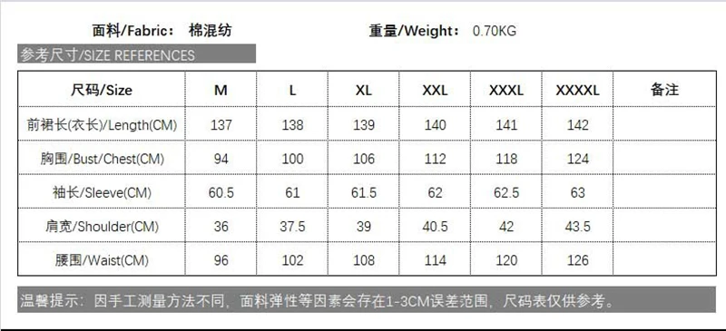 4XL: плечо 43,5 см, обхват груди 124 см, обхват талии 126 см, рукав 63 см, длина 142 см