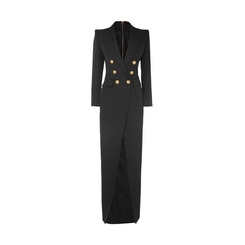 Женское Привлекательное платье-блейзер макси с разрезом, Новое Элегантное двубортное офисное вечернее длинное платье с длинным рукавом, повседневное черное облегающее платье, 2019