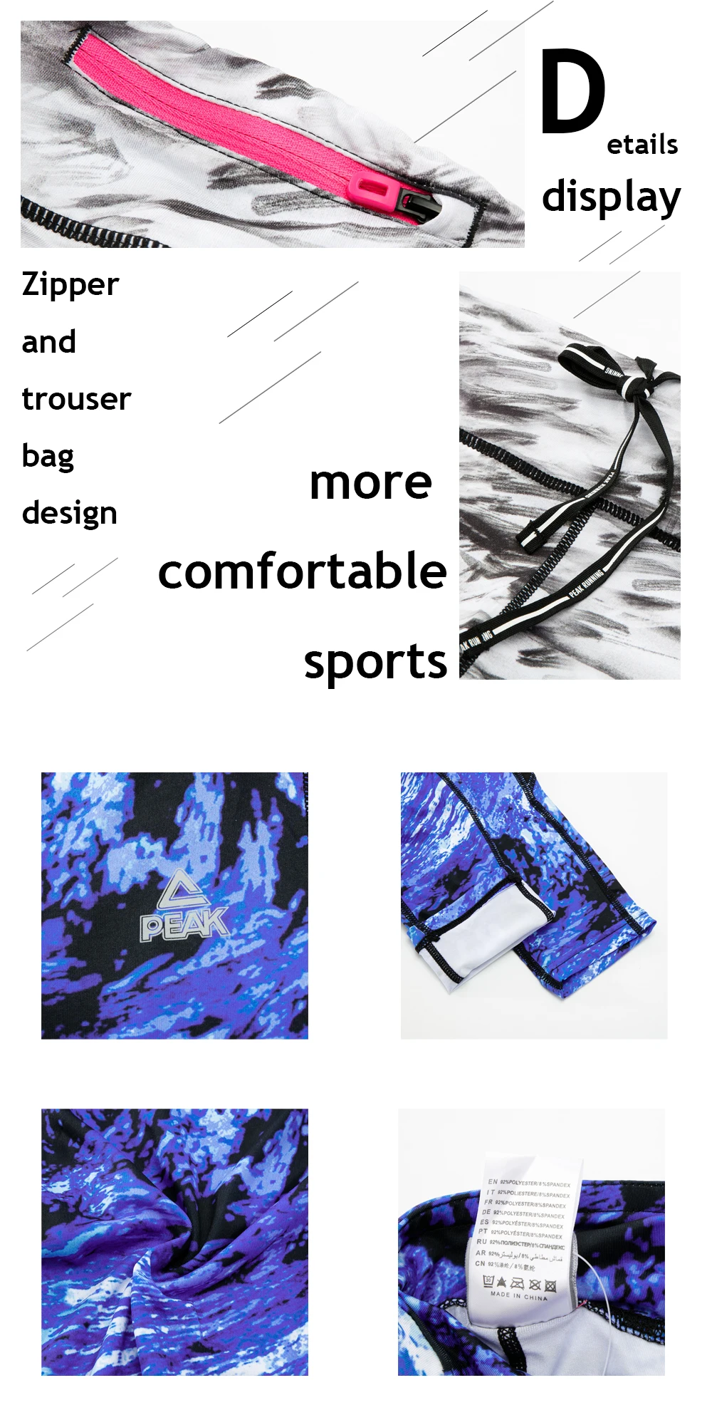 1. Быстросохнущие и дышащие; 2. Расширяется эластичный пояс без соскальзывания; 3. Сетчатое соединение голени увеличивает воздухопроницаемость. Четырехигольчатая и шестипроводная технология для уменьшения трения и повышения комфорта; 4. Светоотражающая печать, повышает безопасность в ночное время; 5. Цифровая печать Модная и яркая; 6. Маленькие карманы могут быть помещены в задний карман; 7. Пиковые женские спортивные штаны, штаны для йоги с карманами, высокая талия, спортивная одежда, быстросохнущие дышащие тренировочные штаны для спортзала, Joging Homme