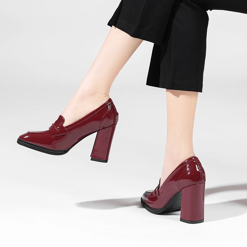 Оригинальные Классические черные туфли-лодочки из натуральной кожи; Женские офисные туфли на не сужающемся книзу массивном каблуке с квадратным носком; Удобные женские туфли на платформе. Пожалуйста, используйте нашу таблицу размеров при выборе размера.