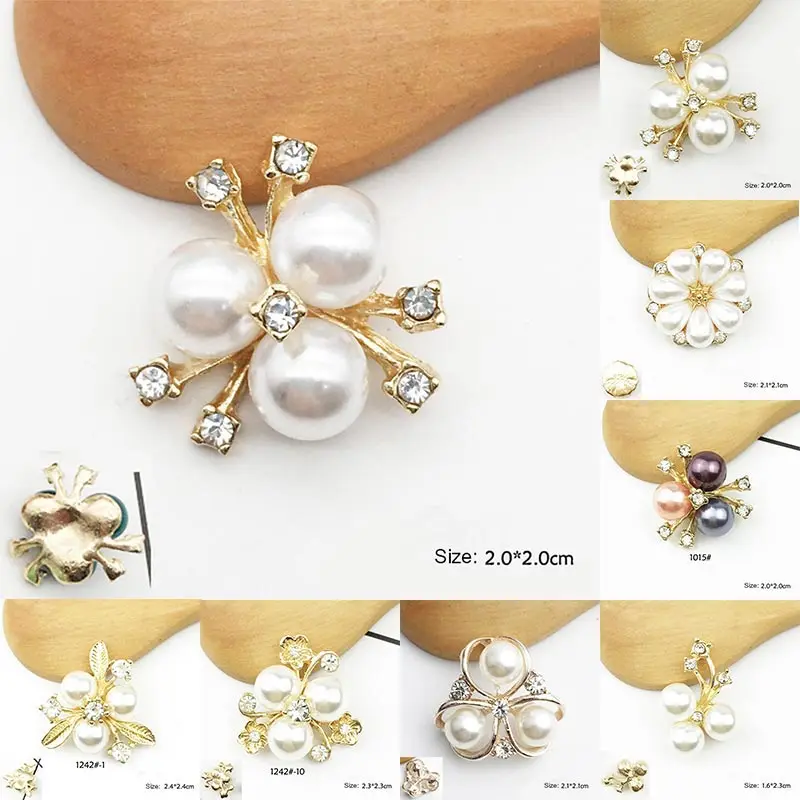 10 шт./компл. DIY цветок Стразы жемчужные пуговицы сплав кристалл бант свадебные украшения Швейные аксессуары